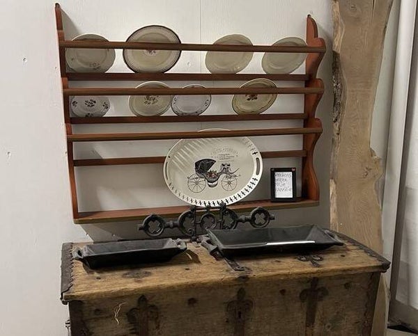 Enkel og elegant tallerkenrække i klassisk design. Perfekt til at udstille tallerkener, kopper eller andet nips. Giver charme og hygge til køkken eller spisestue.