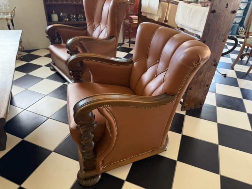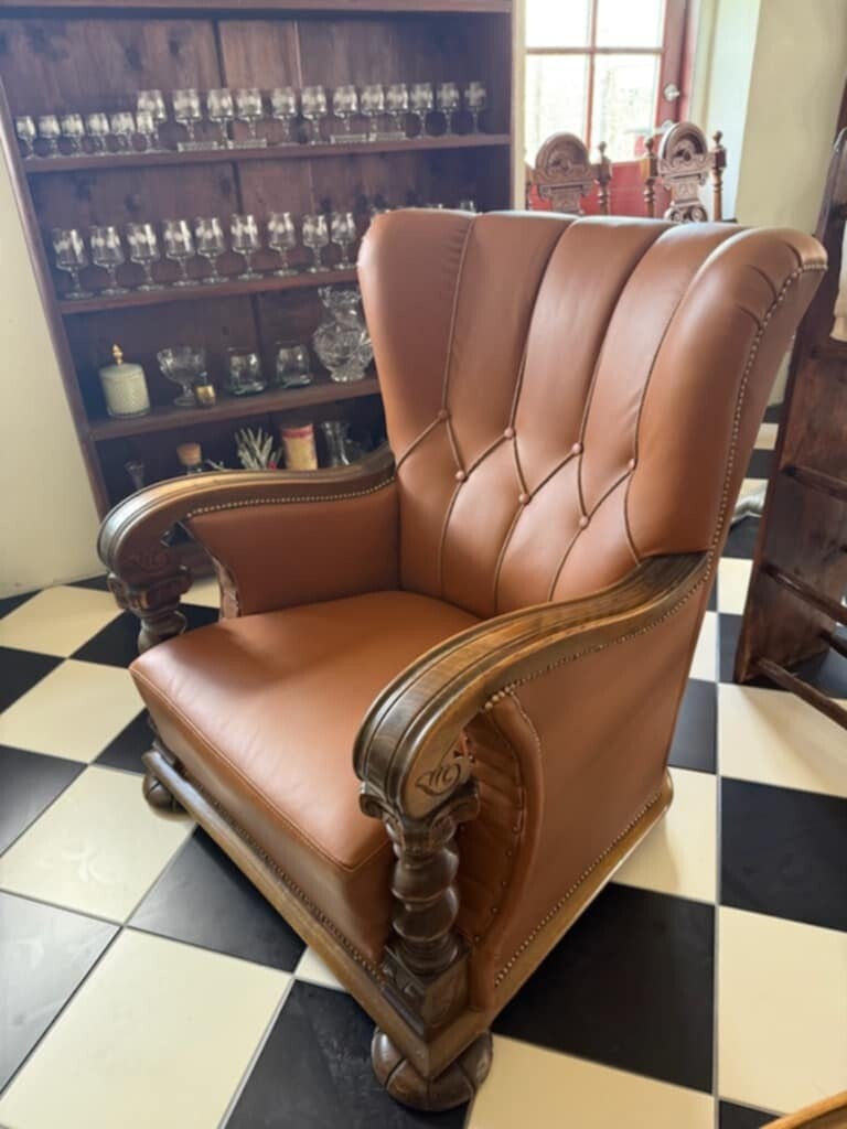 Denne store lænestol er skabt som det perfekte supplement til både sofaen og den mindre lænestol i samme serie. Den deler det varme, brunlige farvevalg, der skaber en harmonisk og sammenhængende atmosfære i rummet.